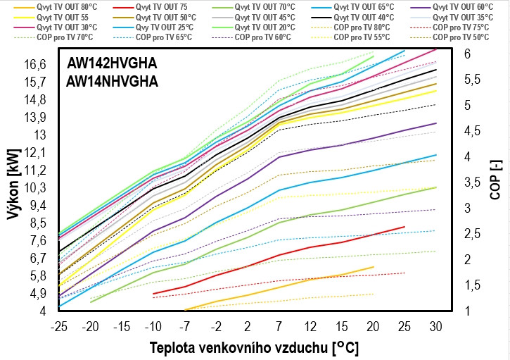- Provozní teploty vytápění: -25 až 35 °C / chlazení: 10 - 48 °C