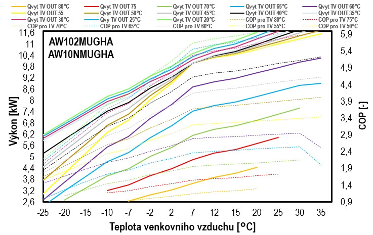 - Provozní teploty vytápění: -25 až 35 °C / chlazení: 10 - 48 °C