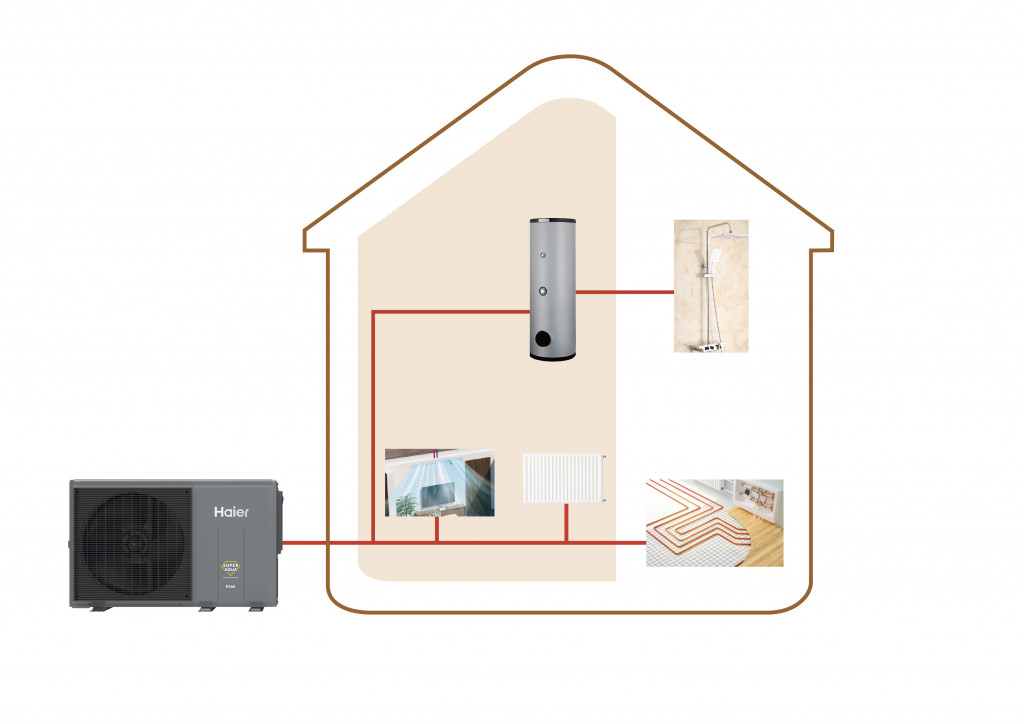 Venkovní monobloková jednotka AW10NMUGHA tepelného čerpadla Haier pro použití v rezidenčních i komerčních aplikacích. Možnost zapojit až 8 jednotek do kaskády.