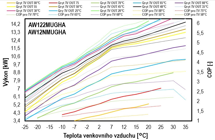 - Provozní teploty vytápění: -25 až 35 °C / chlazení: 10 - 48 °C