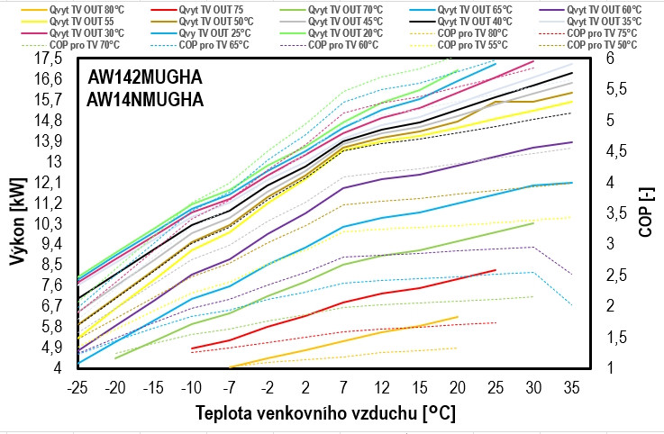 - Provozní teploty vytápění: -25 až 35 °C / chlazení: 10 - 48 °C