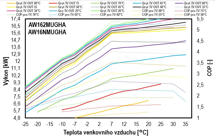 - Provozní teploty vytápění: -25 až 35 °C / chlazení: 10 - 48 °C
