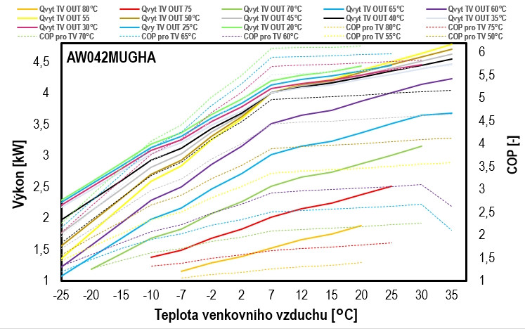 - Provozní teploty vytápění: -25 až 35 °C / chlazení: 10 - 48 °C